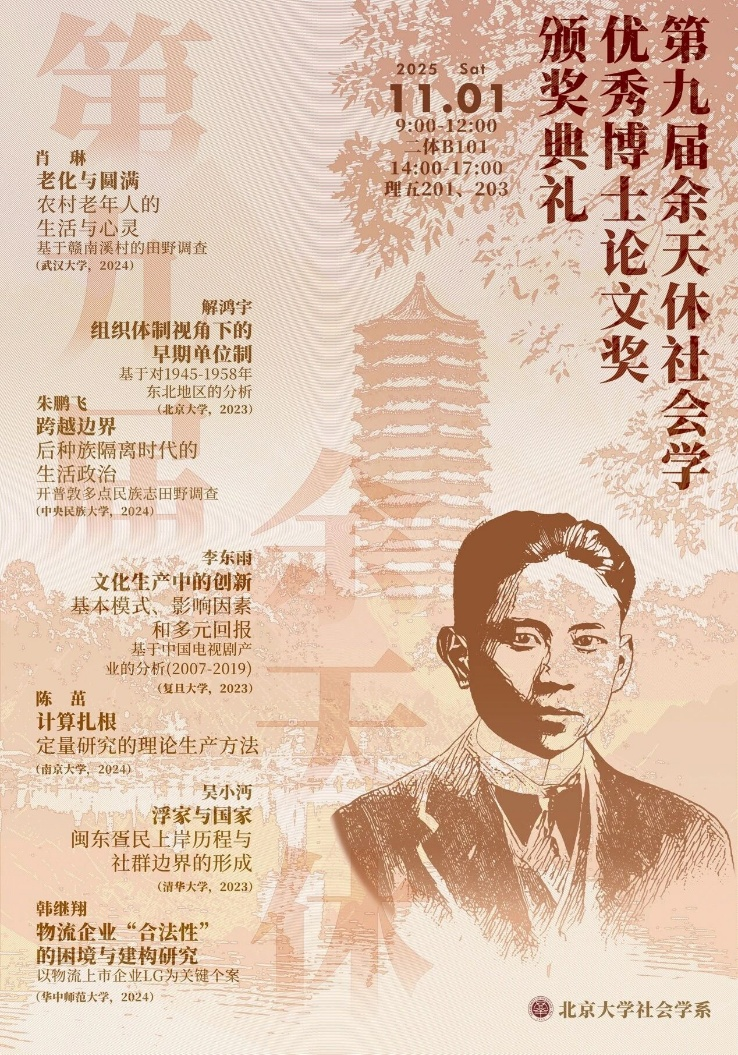 2025年11月1日,第九届“余天休社会学优秀博士论文奖”颁奖典礼在北京大学举行。杏吧原创