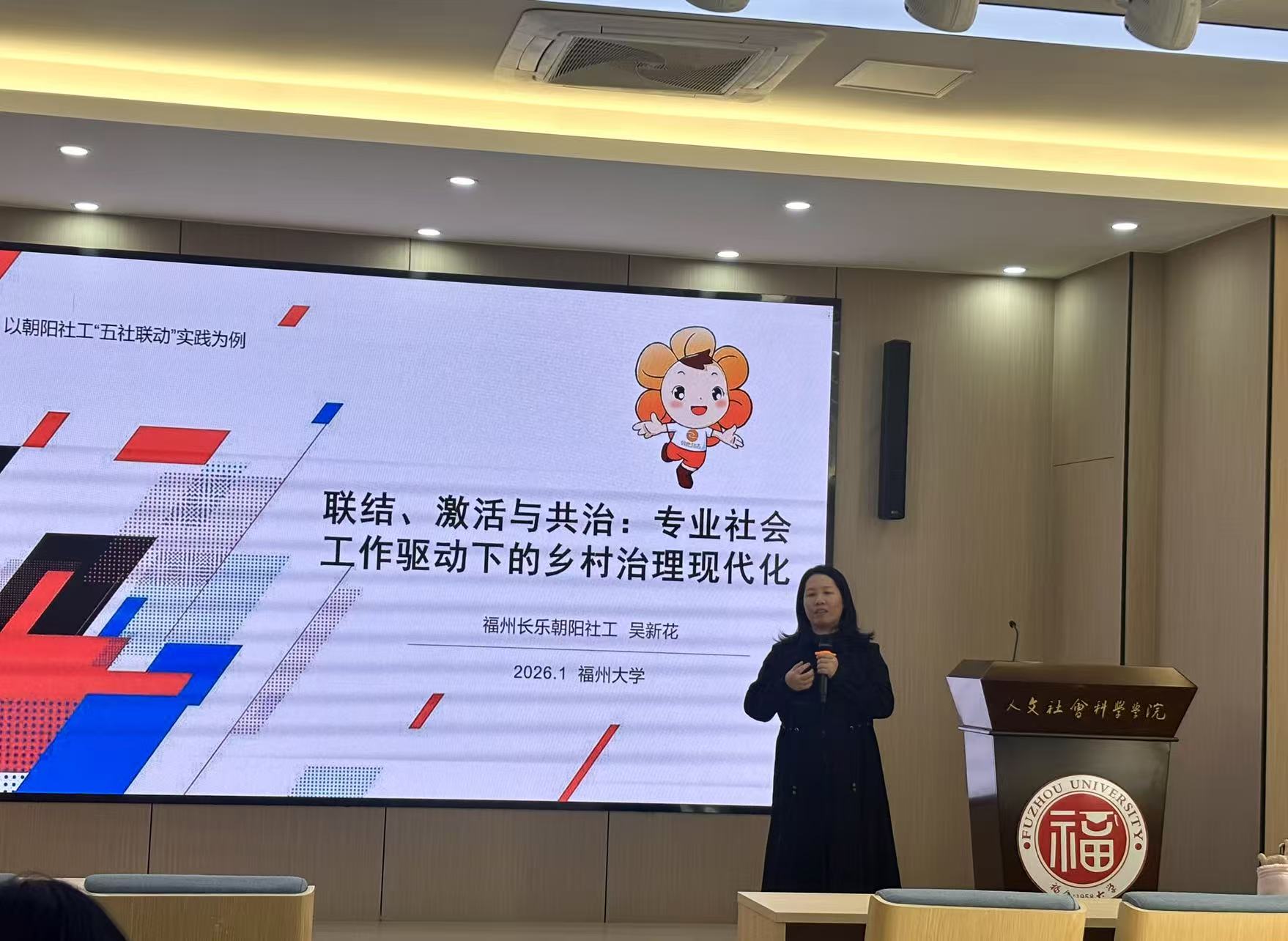 邀请长乐区朝阳社会工作服务中心党支部书记和总干事吴新花,于2026年1月13日开展主题为“联结、激活与共治:专业社会工作驱动下的乡村治理现代化”的工作坊。
