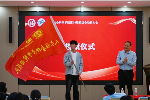 团委书记齐朝阳向运动员代表授旗。旗帜挥动,瞬间点燃了全场激情,也凝聚起全体运动员为集体而战的坚定力量。